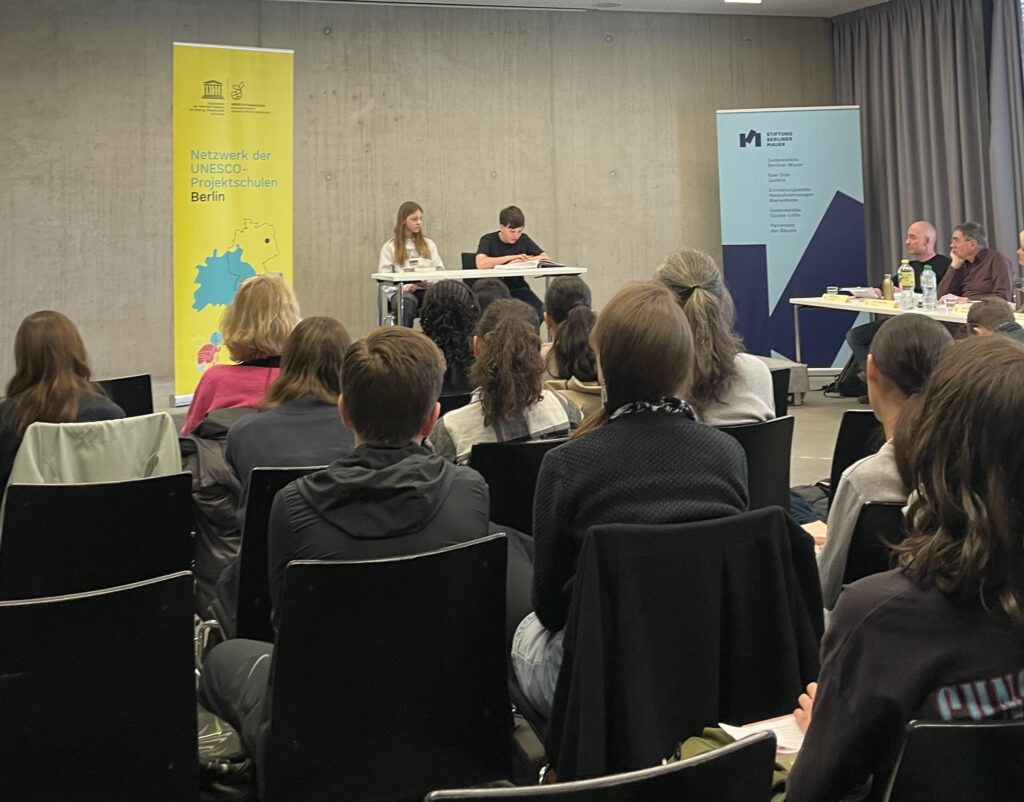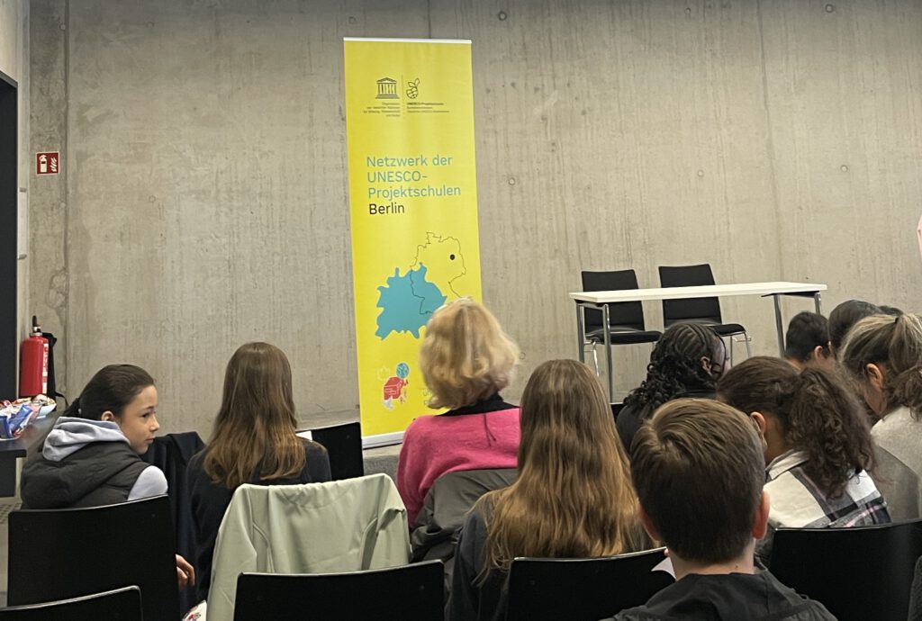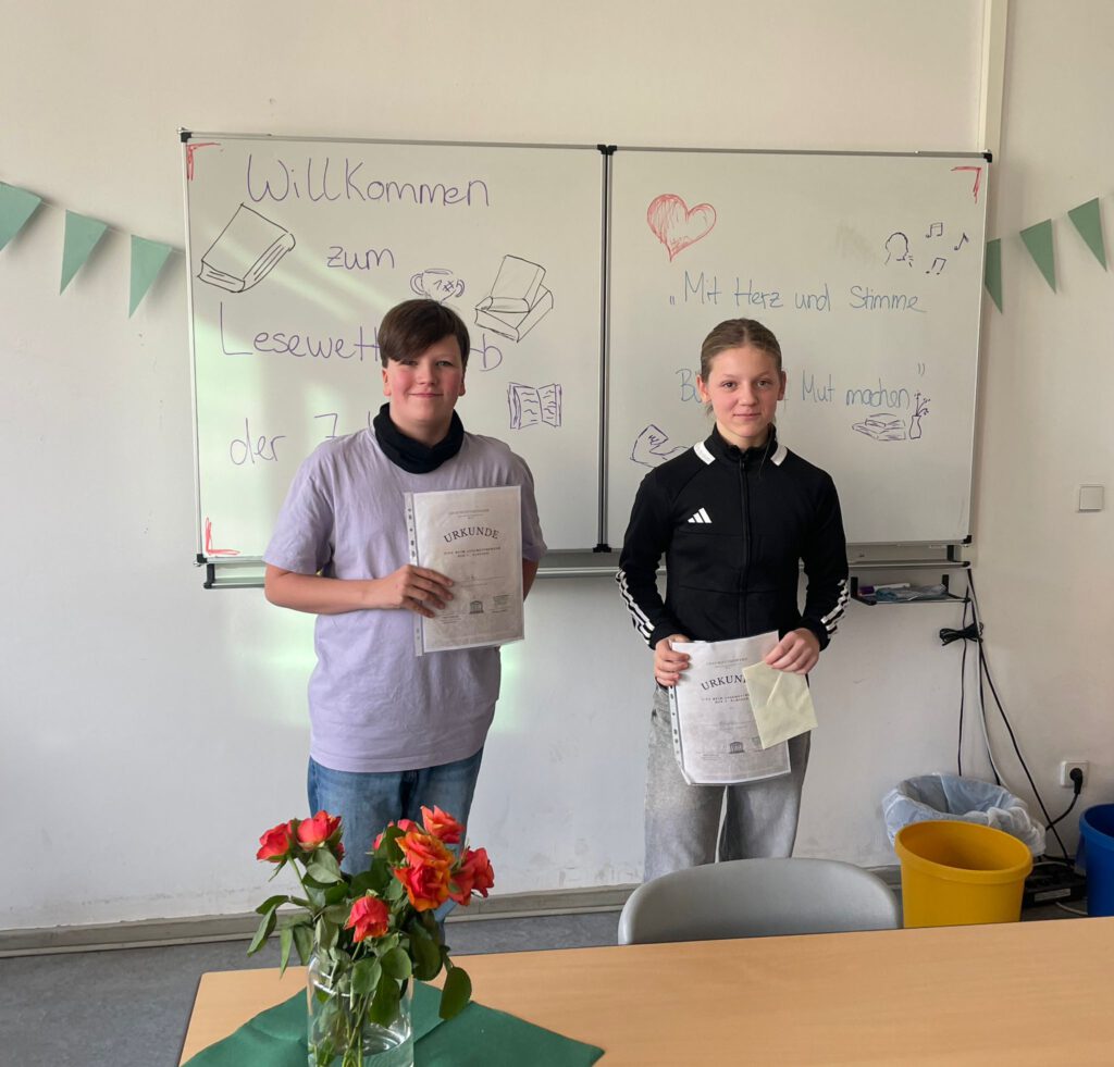Auch in diesem Jahr fand unser Vorlesewettbewerb der 7. Klassen am Tag der offenen Tür statt. Das Motto lautete „Starke Freundschaften, starke Geschichten – Romane, die verbinden“. Von unseren Teilnehmer*innen wurde aus Werken wie „Harry Potter und der Stein der Weisen“, „Codeword Hanna“ und „Not my problem“ vorgelesen. Die beiden Gewinnerinnen sind Adlo (7A) und Paula (7B), welche sich nun für eine Teilnahme am berlinweiten Vorlesewettbewerb aller UNESCO Projektschulen qualifiziert haben. Für diese Teilnahme drücken wir ihnen natürlich die Daumen!